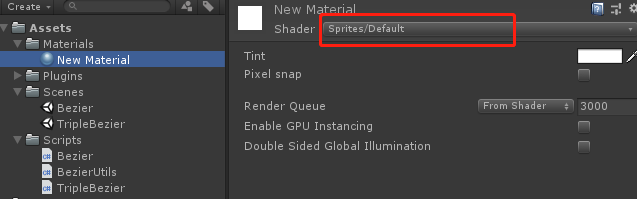 1.先添加一个材质,Shader使用“Sprite/Default”