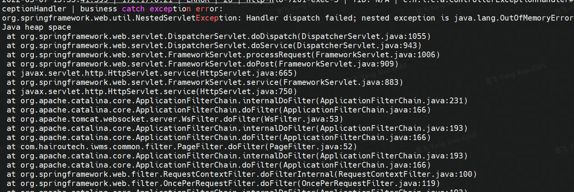 压力测试稳定性测试时发现TPS突然降了下来,进入微服务查看日志发现报内存溢出,如下图。