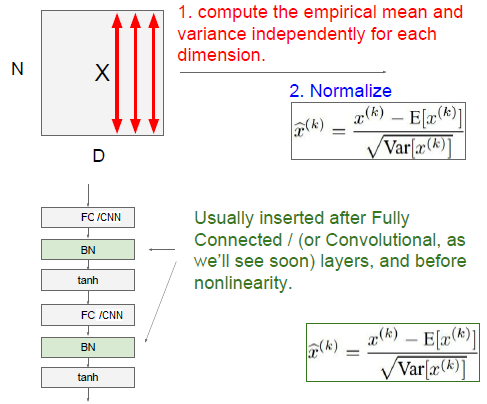 2)BN可以应用于一个神经网络的任何神经元上。文献主要是把BN变换,置于网络激活函数层的前面。在没有采用BN的时候,激活函数层是这样的: z=g(Wu+b)