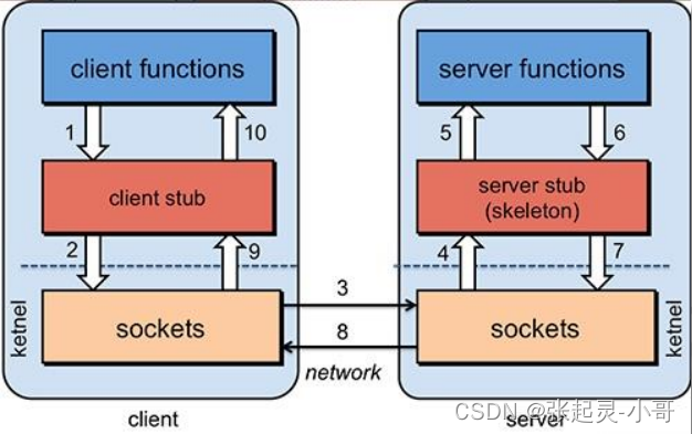 - 通过网络 socket(网络通信的技术),把方法调用的细节内容发送给右侧的 server