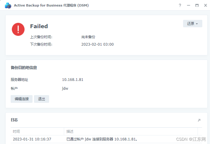 登录目的地NAS,打开“Active Backup for Business”——“Synology NAS”——任务列表——选择任务——编辑