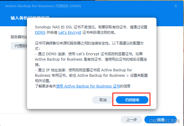 打开“Active Backup for Business代理程序(DSM)”——点击“开始”