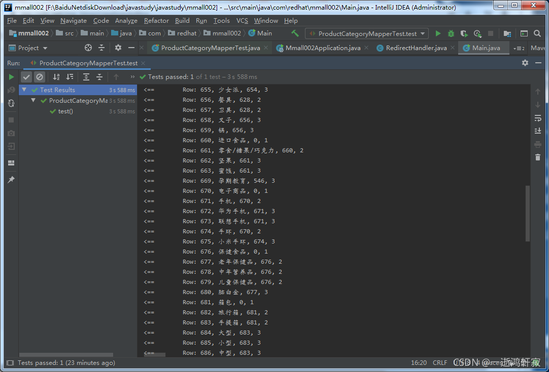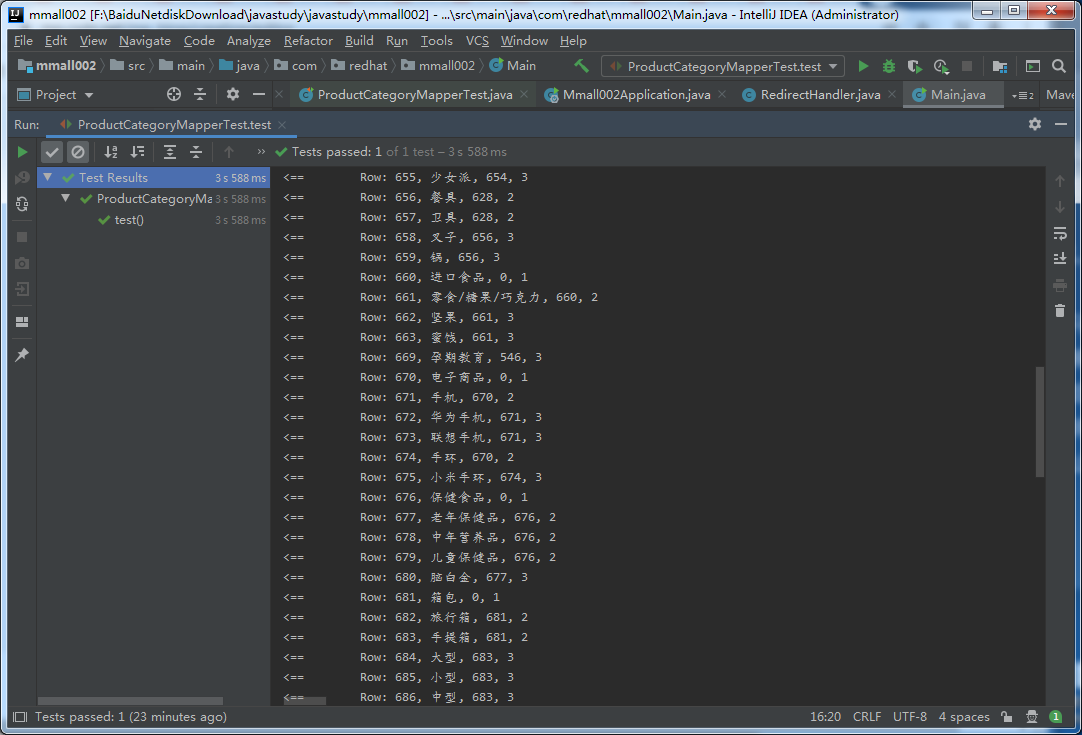 class ProductCategoryMapperTest {@Autowiredprivate ProductCategoryMapper mapper;@Testvoid test(){mapper.selectList(null).forEach(System.out::println);}
