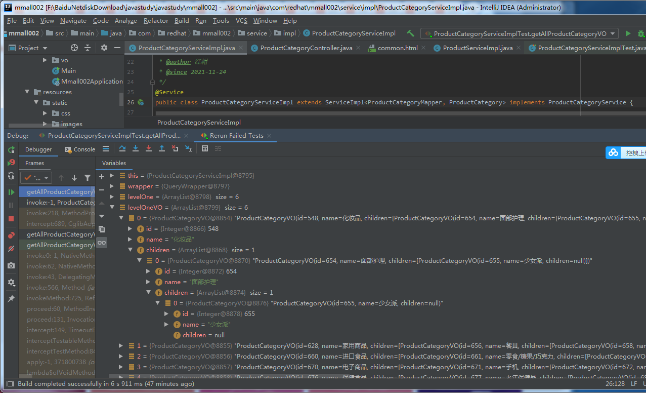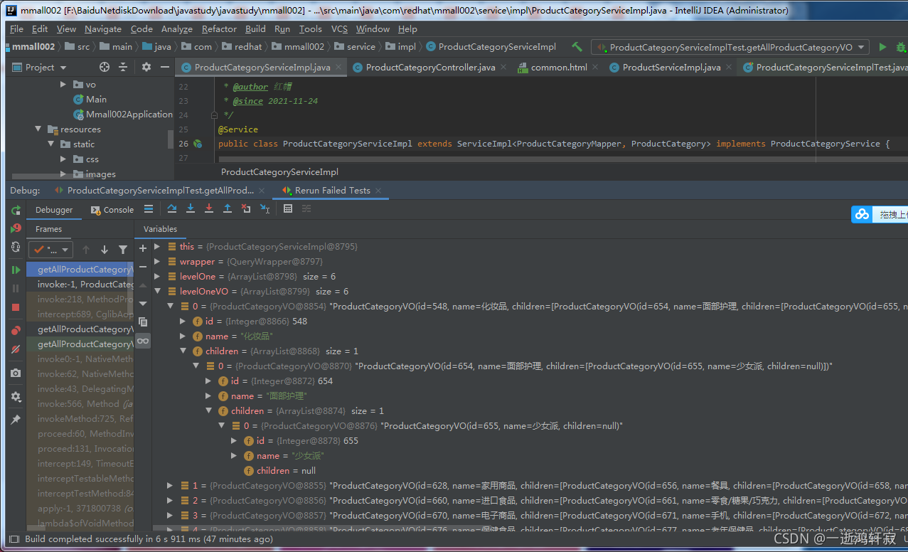 2)ProductCategoryServiceImpl中创建三级分类逻辑关系