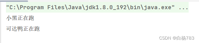 public class Test {public static void walk(IRuning iruning){iruning.runing();//多态}public static void main(String[] args) {walk(new Dog("小黑",2));walk(new Duck("可达鸭",3));}