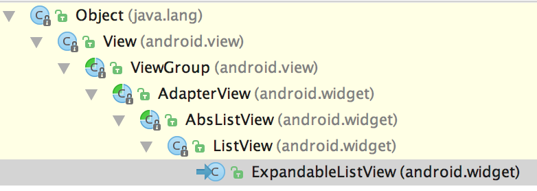 根据上图可知,ExpandableListView是ListView的子类。而expandable 在英文中的意思是可扩展的,所以ExpandableListView就是一个可以扩展的、有层级的ListView。