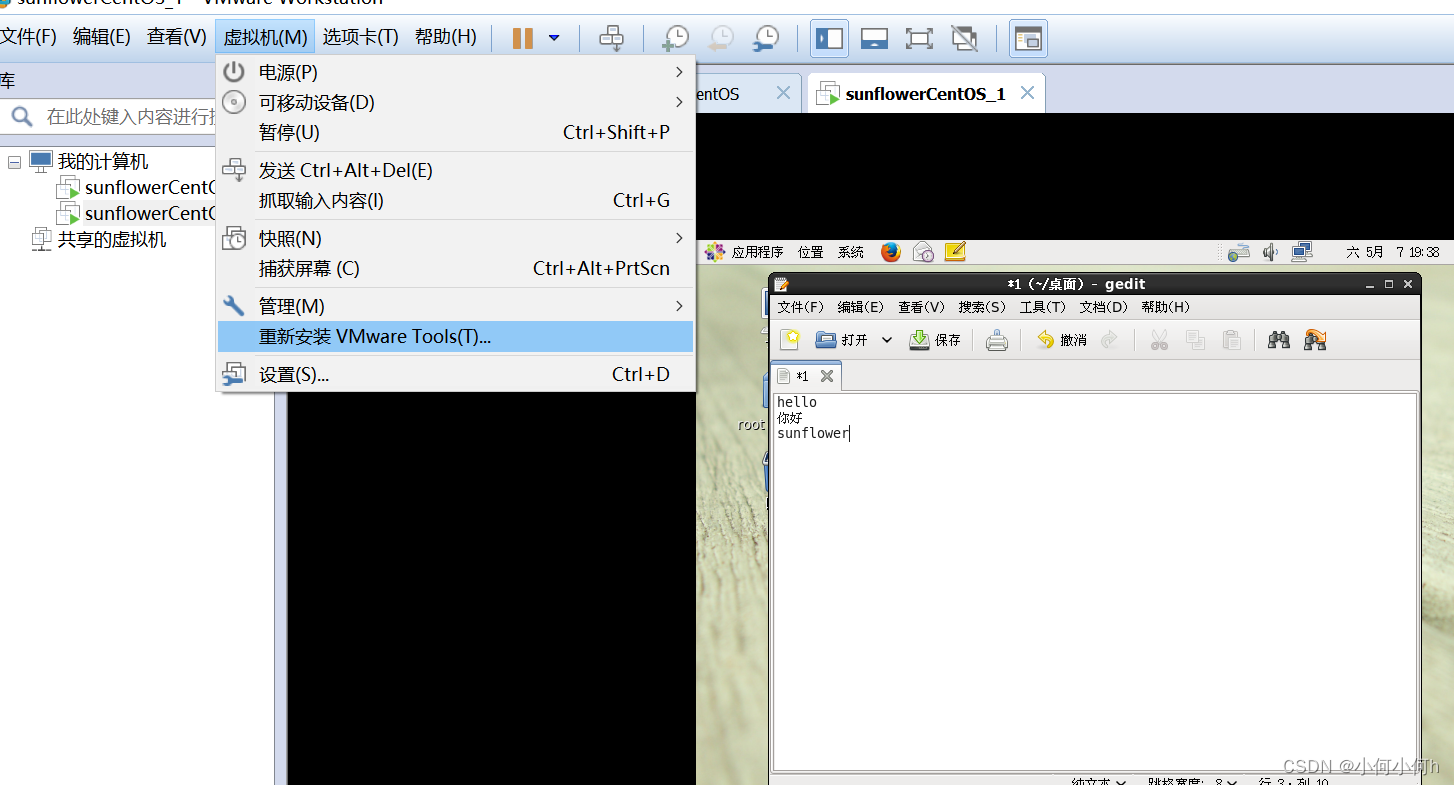 2).点击VM菜单的安装VMware Tools (因为我已经安装了,所以这块显示重新安装)