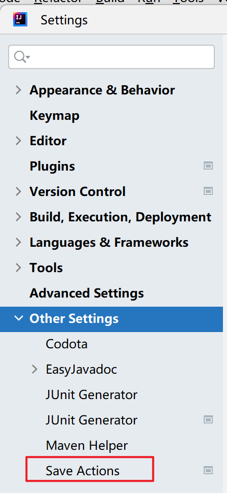 2、打开setting,在other plugin 插件中找到save actions/ 或者全局检索save actions