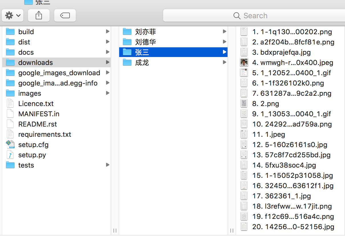 wudi:google-images-download xxx$ googleimagesdownload --keywords "张三" --limit 20Item no.: 1 --> Item name = 张三