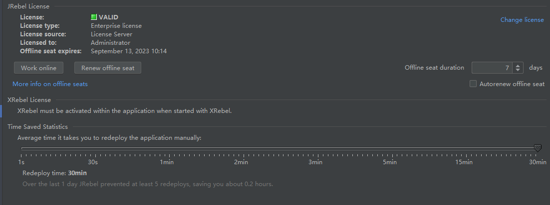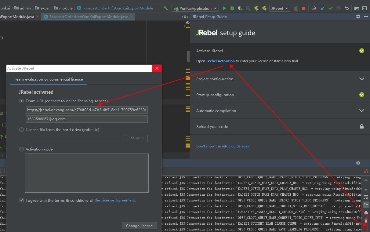 复制到的红框中的GUID,然后拼接到JRebel服务器地址后:https://jrebel.qekang.com/{GUID}