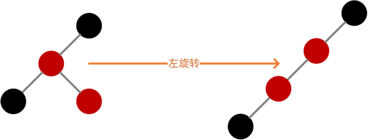 对于当前结点而言,如果右子结点为红色,左子结点为黑色,则执行左旋转,如下图: