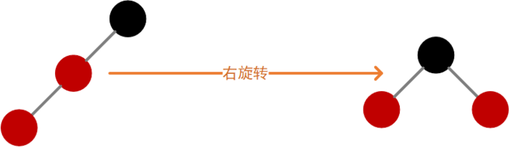 对于当前结点而言,如果左子、左孙子结点均为红色,则执行右旋转,如下图: