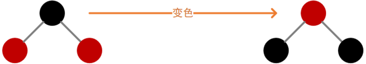 对于当前结点而言,如果左、右子结点均为红色,则执行变色,如下图: