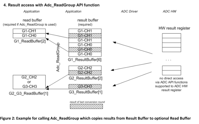 调用Adc_ReadGroup,它将结果从结果缓冲区复制到可选的读缓冲区