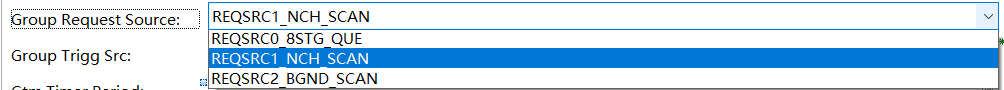 REQSRC0_8STG_QUE对应Group Queued source,REQSRC1_NCH_SCAN对应Group Scan source,REQSRC2_BGND_SCAN对应Background Scan source,在寄存器中有GxARBPR.PRIO0-2设置请求源优先级,GxARBPR.ASENy设置是否使能对应的slot.
