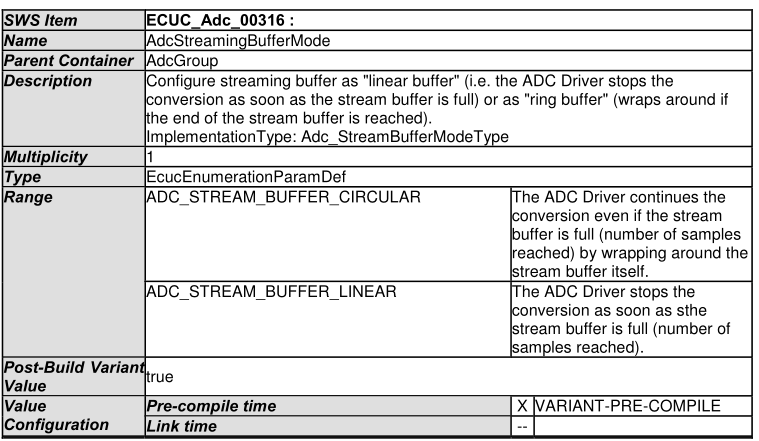 该配置项是Autosar定义的标准配置,有single和streaming两种模式。
