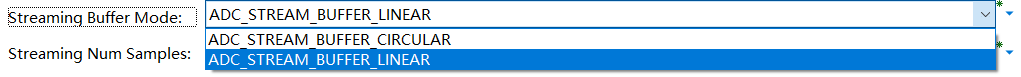 将流缓冲区配置为“线性缓冲区”(即,一旦流缓冲区满,ADC驱动程序就会停止转换)或“环形缓冲区”(如果到达流缓冲区的末端,则环绕)。