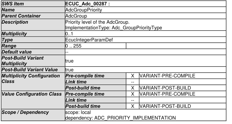 最大值限制为254,因为优先级255被分配给带有HW触发源的Adc channel group。该配置非寄存器实现,应该由软件实现。