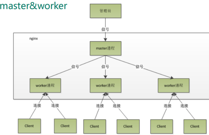 master进程主要用来管理worker进程,包含:接收来自外界的信号,向各worker进程发送信号,监控worker进程的运行状态,当worker进程退出后(异常情况下),会自动重新启动新的worker进程