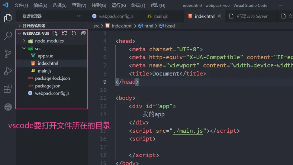 使用live server 各位小伙伴要注意, 先用vscode 打开 文件所在的目录文件夹哦。