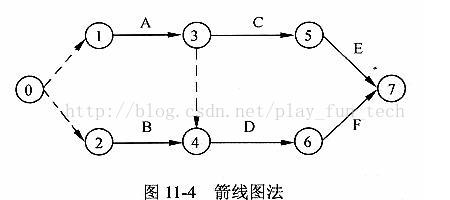 3)箭线图法(Arrow Diagramming Method,ADM),也称双代号网络图法(Active On the Arrow,AOA)。