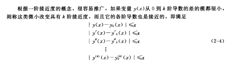 - 如果不仅|y(x)-y0(x)|很小,而且|y(x)-y0(x)|也很小,这也意味着y(x)与y0(x)有微小改变,称这种微小改变具有一阶接近度,如图2-3所示。