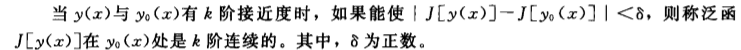 - 若对于变量y(x)的微小改变,存在与之对应的泛函J【y(x)】的微小改变,则称泛函J【y(x)】为连续的。
