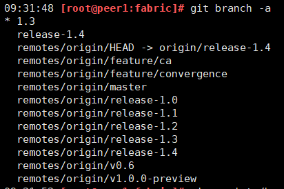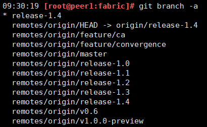 首先,进入下载好的fabric目录,执行git branch -a查看所有分支列表: