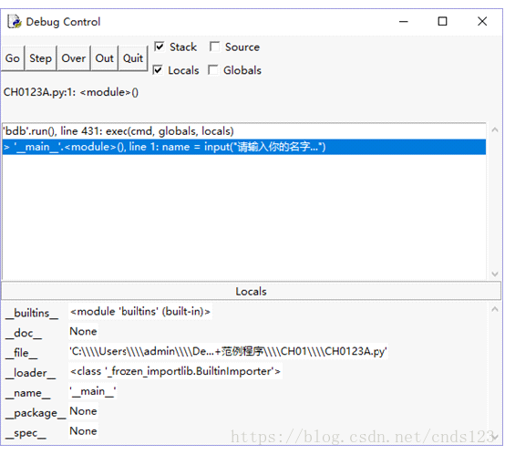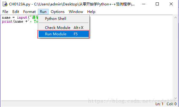 第3步、此时再次点击运行Run → Run module(F5)即可进入调试程序状态。