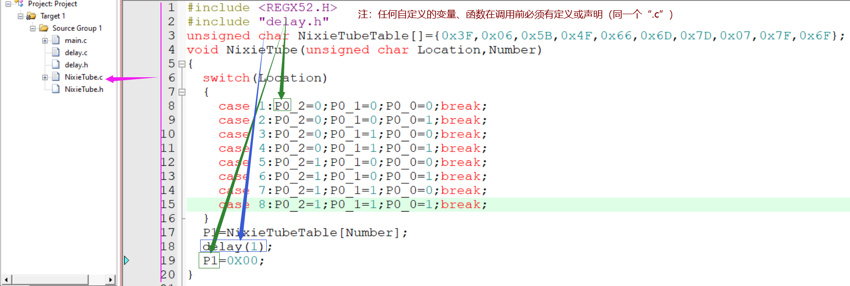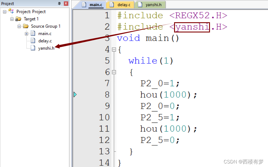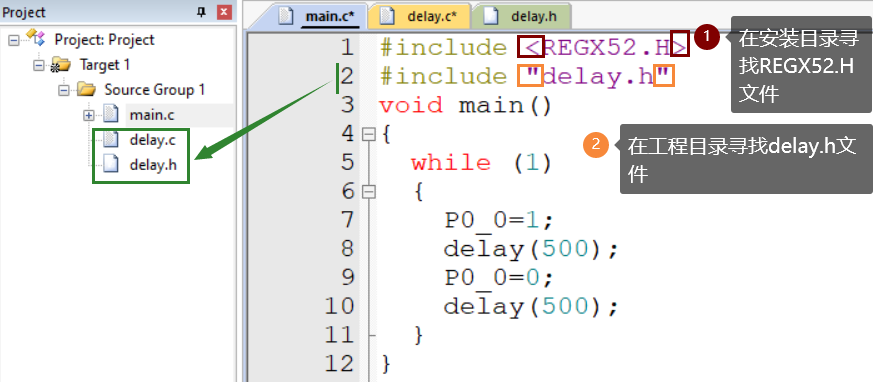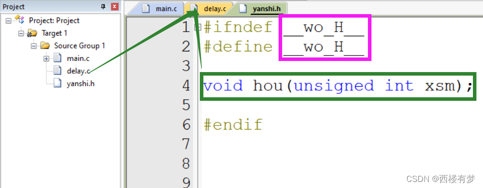 ②注意事项:❶“.c文件”放函数、变量的定义;