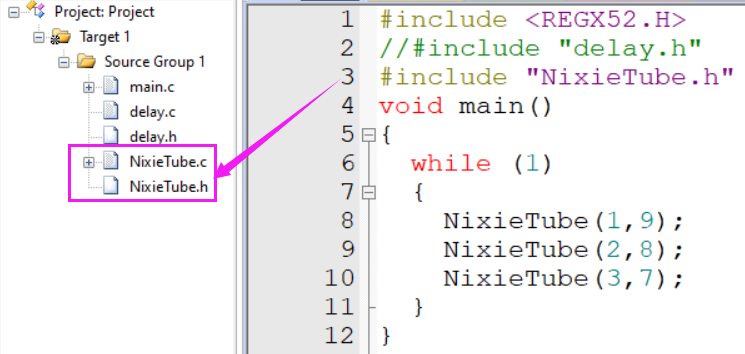 其它“.c”文件想使用其中的代码时,只需要#include "XXX.h"文件即可。