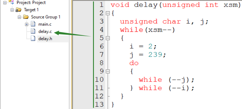 ❹使用到的自定义函数的“.c文件”必须添加到工程参与编译;