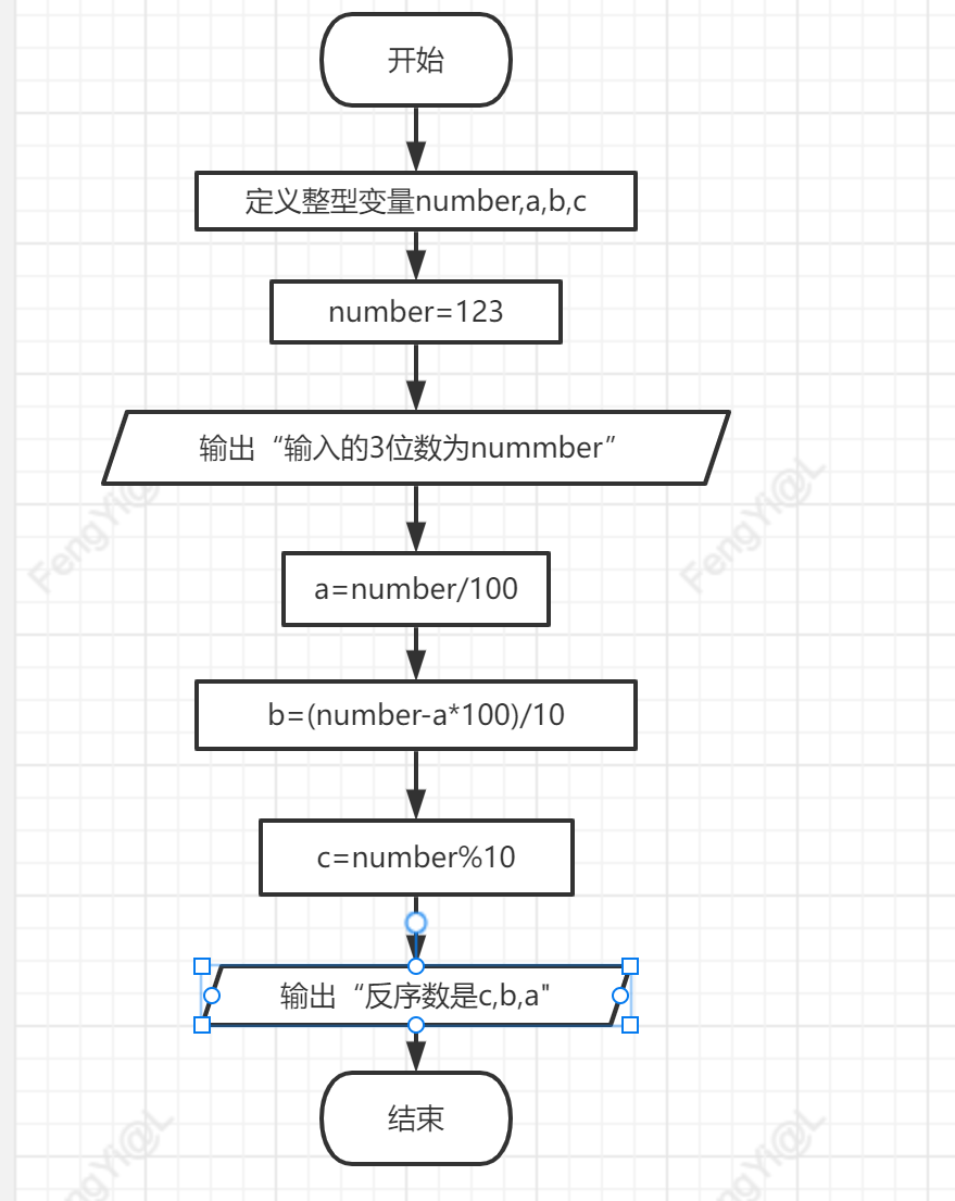 int main() {int number, a, b, c;number = 123;printf("输入的3位数为:%d\n", number);a = number / 100;b = (number - a * 100) / 10;c = number % 10;printf("反序数是:%d%d%d\n", c, b, a);return 0;