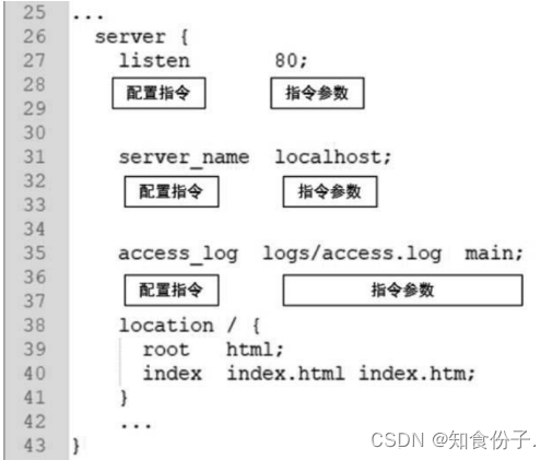 Nginx配置文件中的配置指令如果包含空格,就需要用单引号或双引号引起来。指令参数如果是由简单的字符串构成的,简单配置项就需要以分号结束;指令参数如果是复杂的多行字符串,配置项就需要用花括号“{}”括起来。