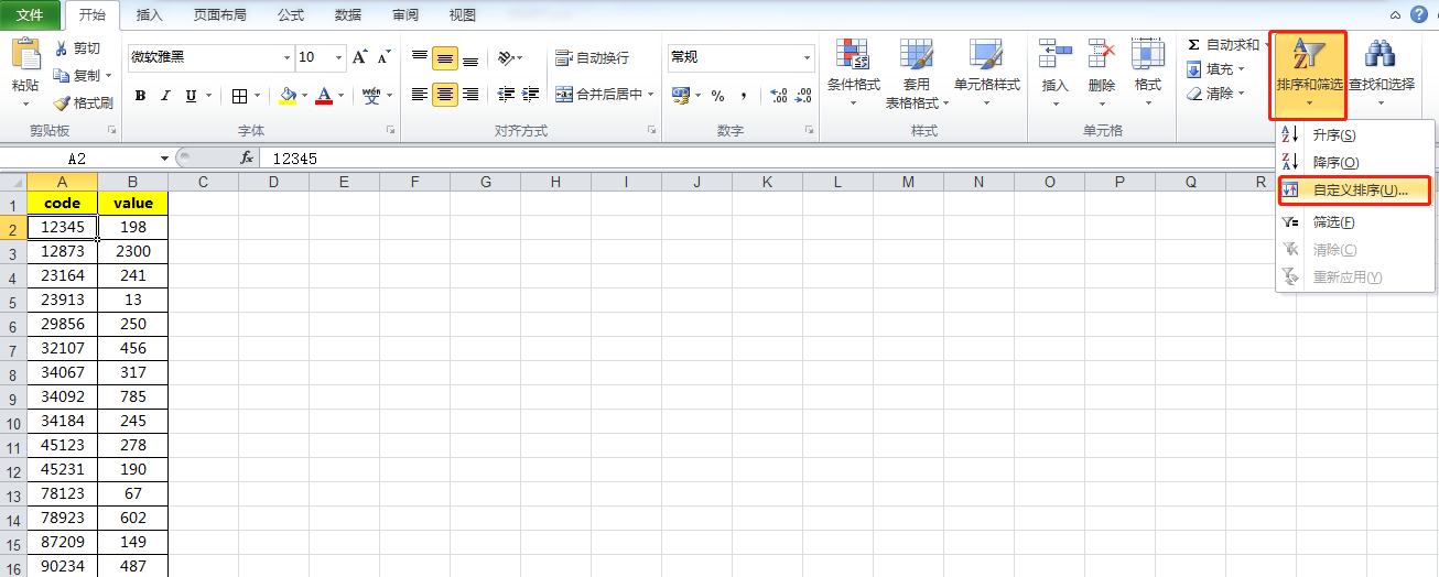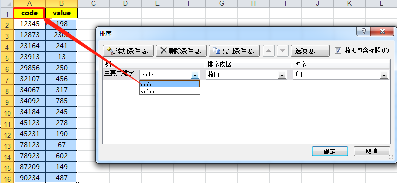 需求:要求按照指定的code出相应的value值,后台可能查出来的code对应的值无法与给定的顺序匹配上,当然可以用代码解决,但是如果想偷懒可以直接用Excel强大的自定义排序解决。