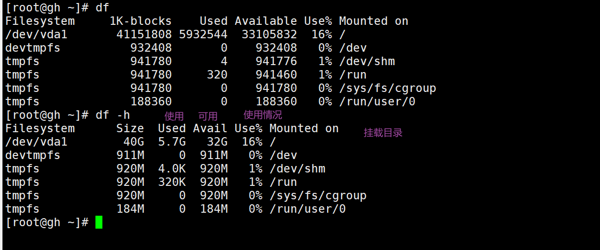 df命令参数功能:检查文件系统的磁盘空间占用情况。可以利用该命令来获取硬盘被占用了多少空间,目前还剩下多少空间等信息。