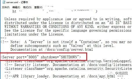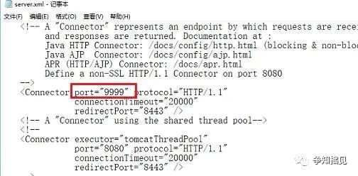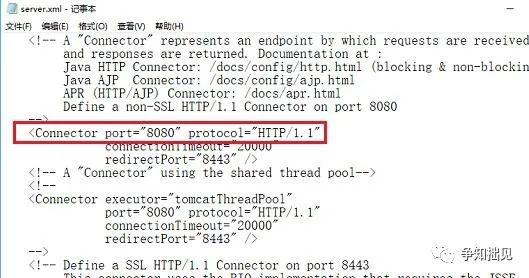 2、打开server.xml文件之后,可以看到默认是8080端口。