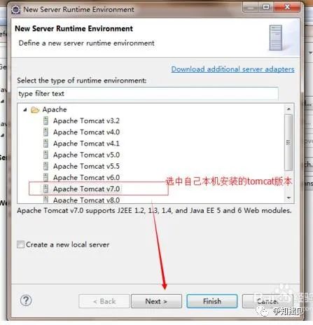 5、选择自己电脑上安装Tomcat版本,选择完成后点击【next】。