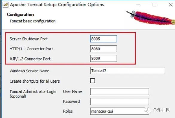 7、如果是安装版的tomcat的话,在安装的时候,会提示设置端口
