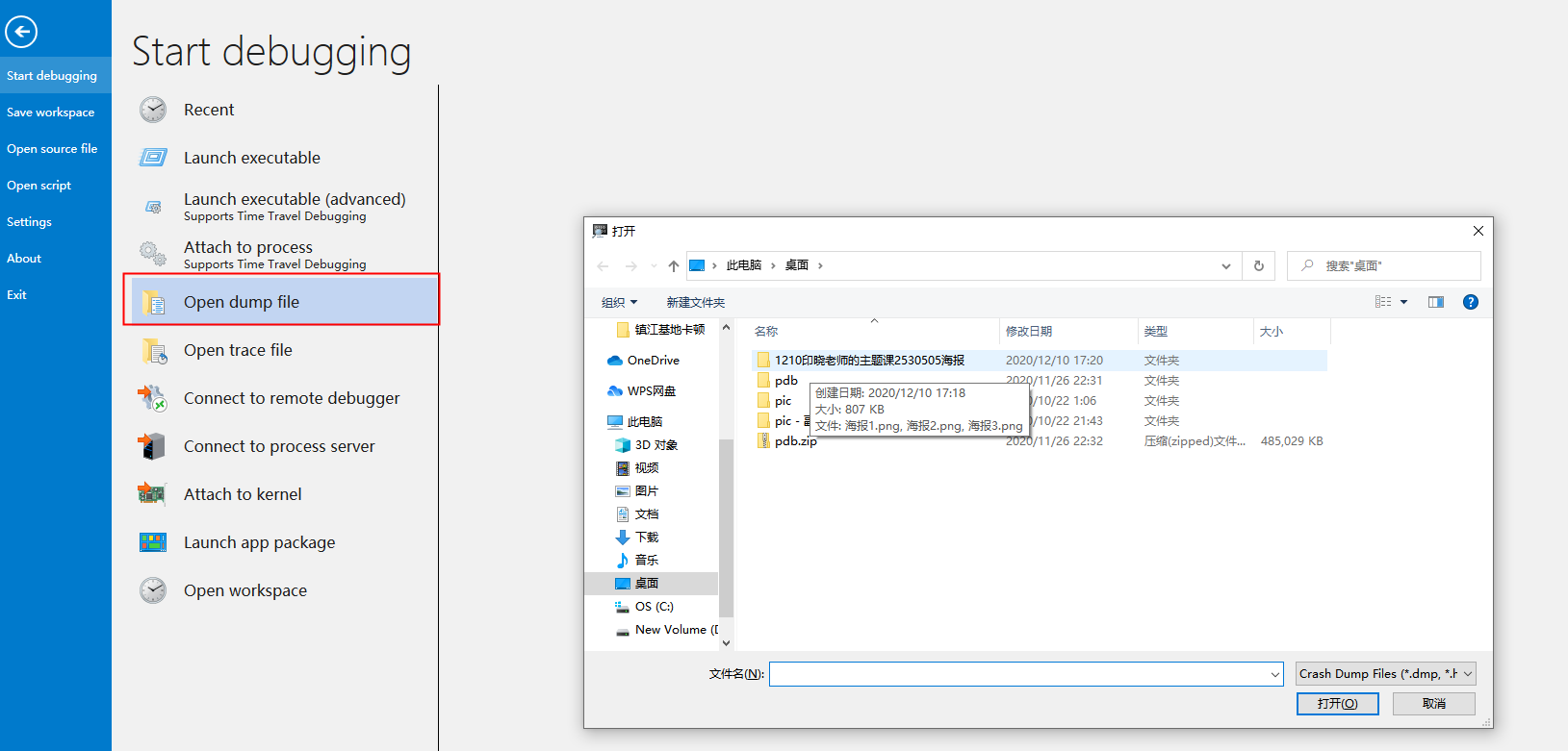 拖动打开:可以直接将dump文件拖动到窗口中,就可以打开。