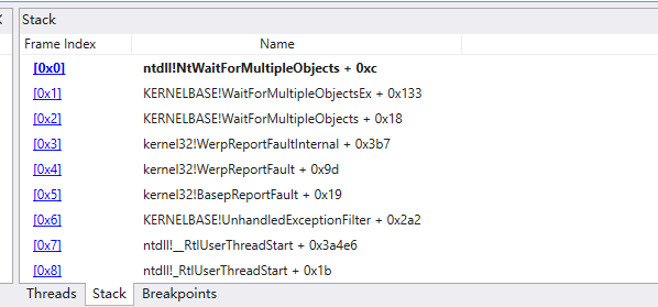 线程2前面的数字符号 (#) 意味着此线程最初引发异常,或者在调试器附加到进程时它处于活动状态。