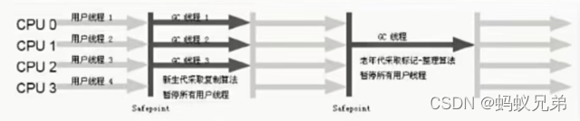 多个垃圾回收器并行工作,此时用户线程是暂时的,适用于科学计算/大数据处理等弱交互场景。