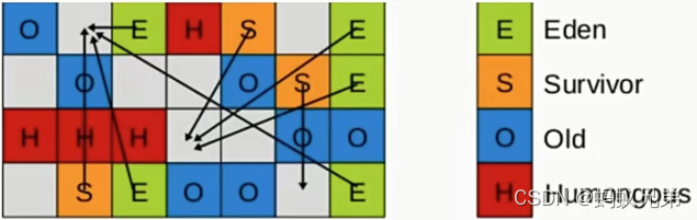 这些Region的一部分包含老年代,G1收集器通过将对象从一个区域复制到另一个区域,完成了清理工作。这就意味着,在正常的处理过程中,G1完成了堆的压缩(至少是部分堆的压缩),这样就不会有CMS的内存碎片问题了。