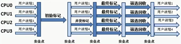 这些Region的一部分包含新生代,新生代的垃圾收集依然采用暂停所有应用线程的方式,将存活的对象拷贝到老年代或者Survivor空间。