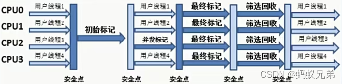 重新标记(Remark):为了修正在并发标记期间,因用户程序继续运行而导致标记产生变动的那一部分对象的标记记录,仍然需要暂停所有用户线程。