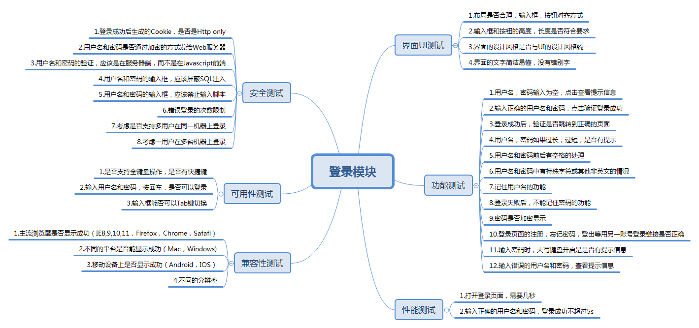 单用户登陆系统的响应时间是否符合“3-5-8”原则。(3s之内得到响应,那么给客户的感觉是该系统性能十分优秀;5s之内请求得到响应,用户会感觉还不错;
