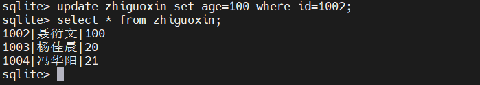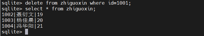 select id,name,age from zhiguoxin;//只查询id,name,age的字段