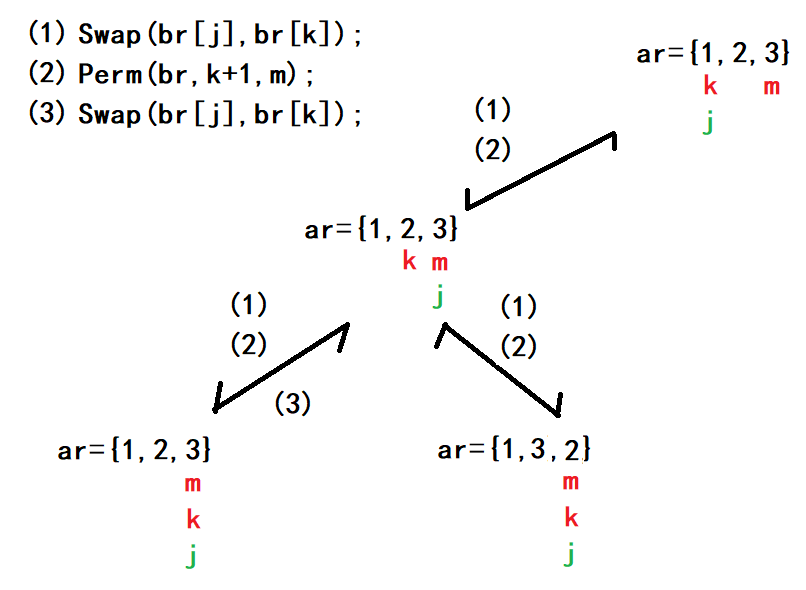 Swap(br[j], br[k]); Perm(br, k + 1, m);