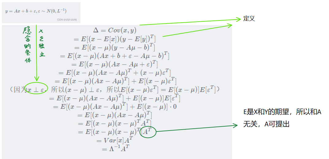 不难发现,y与x的关系为线性高斯模型,则yy与x符合下述关系