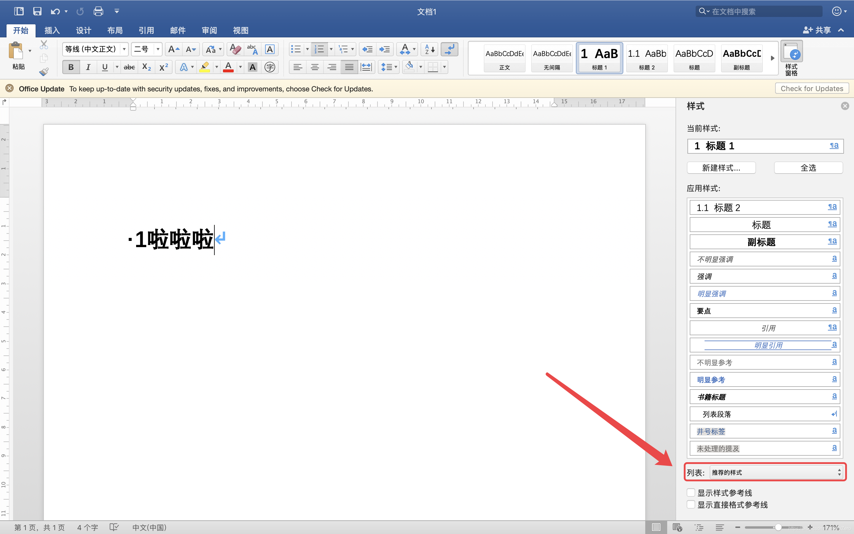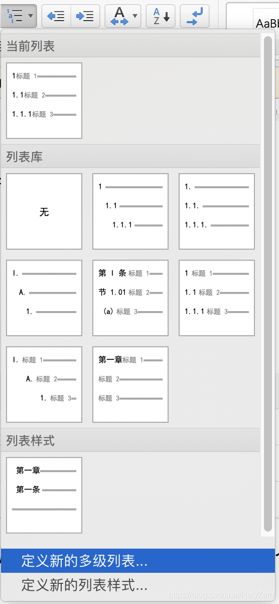 这里能发现一个问题,之前将级别三链接到标题3,但这里并没有标题3的选项,有时甚至标题123都没有,解决方法见下节